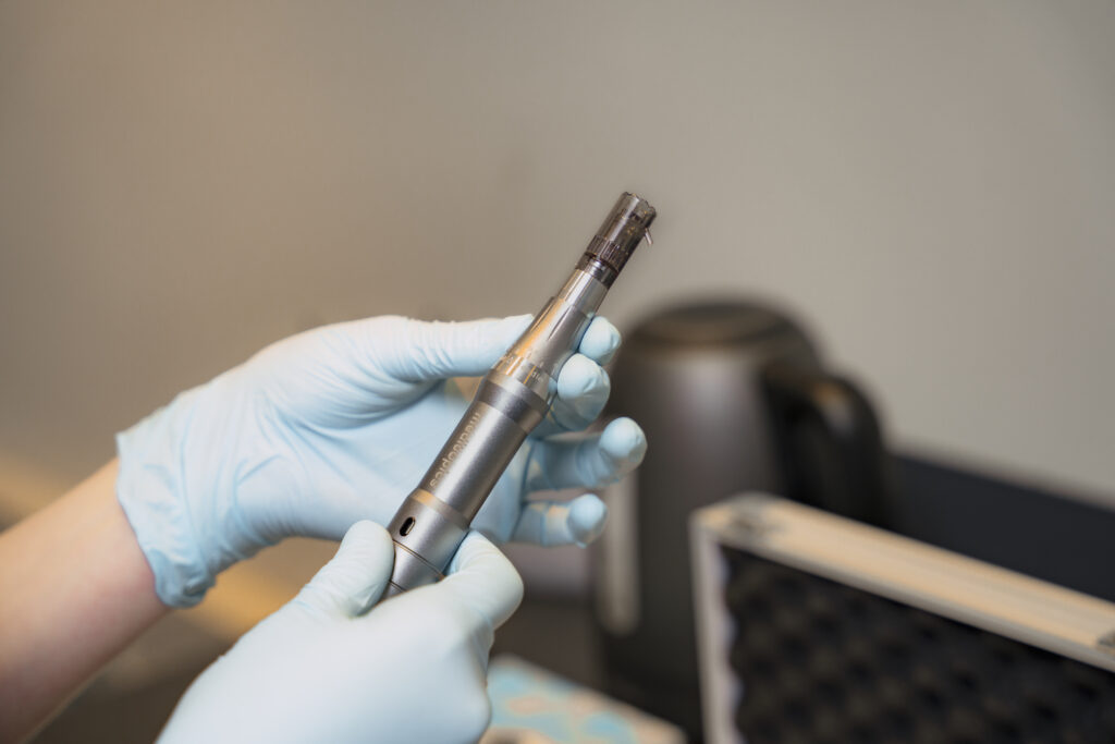 Microneedling is een geavanceerde behandelprocedure die zich richt op het regenereren van de huid door gebruik te maken van de Dermapen. De Dermapen heeft een (steriele) opzetkop met 12 zeer fijne naaldjes. Deze naaldjes vibreren op een hoog tempo in de huid, waarbij microscopische perforaties worden gemaakt. Dit proces stimuleert de productie van collageen en elastine, twee cruciale lichaamseiwitten die verantwoordelijk zijn voor de stevigheid en elasticiteit van de huid. Door de microscopisch kleine ‘verwondingen’ die tijdens de behandeling ontstaan, wordt het natuurlijke herstelmechanisme van de huid geactiveerd. Dit leidt tot een gecontroleerd wondgenezingsproces en een verhoogde bloedcirculatie naar het behandelde gebied, waardoor de huid op celniveau wordt vernieuwd. Als resultaat van deze intensieve huidbehandeling wordt de huidstructuur sterker, weerbaarder, soepeler en egaler.